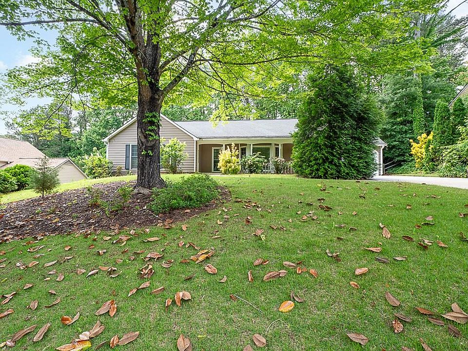 This lovely ranch home is tucked in a quiet and friendly neighborhood, Roswell address with Cobb county taxes and schools! Hardwood-floored entryway leads into vaulted living room with fresh paint that makes a statement, and centered by a cozy fireplace. Separate dining room at the front of the home that leads into kitchen makes for a great space to entertain. Kitchen features newer stainless steel appliances including a gas range, granite countertops, and a breakfast nook. Bedrooms are on opposite end of home including spacious primary bedroom with en-suite bath that offers a walk-in tub. Screened in porch offers a peaceful space to take in the outdoors with some protection from the elements, and a lovely fenced yard to enjoy. Updates include newer double paned windows and spray foam insulation in the attic, making the home very energy efficient! Unbeatable location just steps from grocery stores and shopping, restaurants, minutes from downtown Roswell, parks, and more!