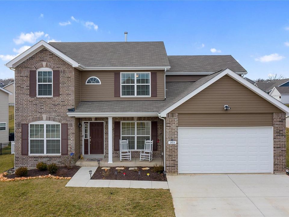 Move into a new construction home without the build wait! Home was built in 2019 and ready for a new family to call it their own! This 5 bed/2.5 bath home was built to be the seller's forever home. Upgrades galore throughout like 9 ft ceilings, granite countertops, beautiful 6 panel Bay Window, Master Bedroom Suite w/ Coffered ceilings and Luxury Master Bathroom, Main Floor Laundry, 42" Kitchen Cabinetry, Gas Fireplace, Partially Finished Basement with added Bedroom. Wood flooring in common areas and carpet in bedrooms and finished area of basement. Fenced in leveled backyard with fire pit! This corner lot home has amazing curb appeal! Easy access to Old Lemay, 141, and 55, shopping and entertainment! Don't wait to see this gorgeous home!