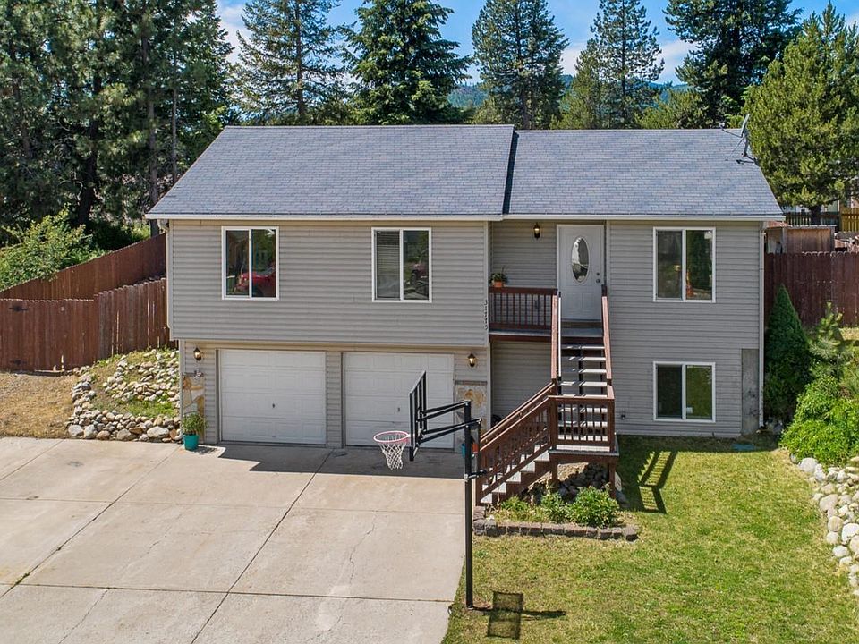 Come see this 4 bedroom 3 bathroom two story home on a large lot of a great neighborhood in Spirit Lake just 30 minutes from Post Falls or Coeur d’Alene. This 1,652 sq.ft. home features an open floor plan upstairs which extends into the fenced in back yard, sprinkler system, laminate flooring inside, master suite with tub/shower combo, air conditioning throughout, a 2 car garage, and even a large parking area to the side to park an R.V. or anything else. There is an open deck in the back yard and an area and hookup for a hot tub. Just minutes away you will find local schools, a revitalized downtown area with shops and restaurants, and the lake with a sandy beach and boat launch.