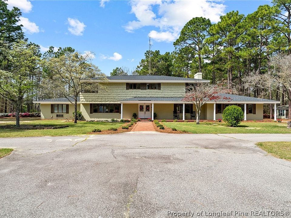 Welcome to Wendover Place! Over 4600 Sq. Ft. on 3.52 acres in Jack Britt School District! There is so much to love about this home! Two primary bedrooms with en suites, 1 downstairs and one upstairs with large sitting area and fireplace! Three other bedrooms and full bath upstairs. Enjoy the spaciousness of the downstairs with eat-in kitchen, dining room, living room w/wood burning fireplace, den with gas fireplace, and sunroom looking out to the backyard. Need another special space? There is a large basement with a fireplace as well with so many possibilities! This property provides the space and opportunities to enjoy the outdoors, from swimming in the large gunite pool, relaxing under the covered patio, enjoying sitting on the front porch, or taking walks to enjoy the beautiful trees and mature azaleas that grow on the property! There's even a detached garage/shop for projects and hobbies as well as a golf cart storage area! Conveniently located to schools, shopping and restaurants!