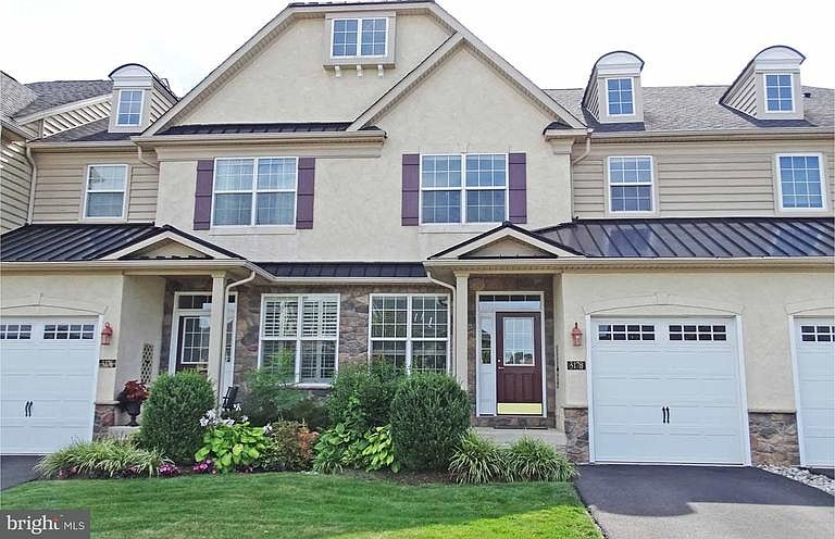 Tremendous 9 year old townhome backing to acres of common ground and a thick tree line in sought after Townhomes at Heritage Center. Bright open floor plan featuring hardwood floors and 9' ceilings throughout the 1st floor. Gourmet eat-in kitchen with 42" cabinets, stainless steel appliances, recessed lighting, double ovens and a sunny breakfast nook with sliding glass doors leading out to the elevated Trex deck with views of open space and woods. Family room is open to the kitchen and has a marble faced gas fireplace. Magnificent master suite has tray ceiling, recessed lighting, a huge walk-in closet and sumptuous en-suite bath featuring double vanities, ceramic tile floor and surrounds, steep in tub and a separate shower stall. Both secondary bedrooms have vaulted ceilings, ample closet space and are very well lit. Awesome full finished walk out basement with SGD and additional full window has abundant recessed lighting, a large storage area, great ceiling height, and a full 3 piece bath! Award winning Central Bucks Schools. Tastefully decorated and move in ready home can accommodate a quicker settlement date. Must see in this price range!