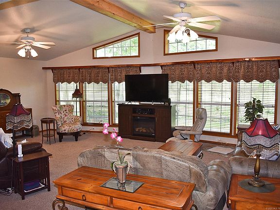 Endless possibilities on this unique, custom built 2,625 SF home on 59 acres near the Red River! Large living area with fireplace and dining area have high ceilings and lovely front yard views. Gourmet kitchen, ample storage, double pantry, work island and 8' breakfast bar. Bedroom suite secluded to the east wing offers space for large furnishings and seating area. Adjoining bath with double sinks, separate shower. Hoop barns, lodge facility to support five cabins and bath house on site. Stunning lake.