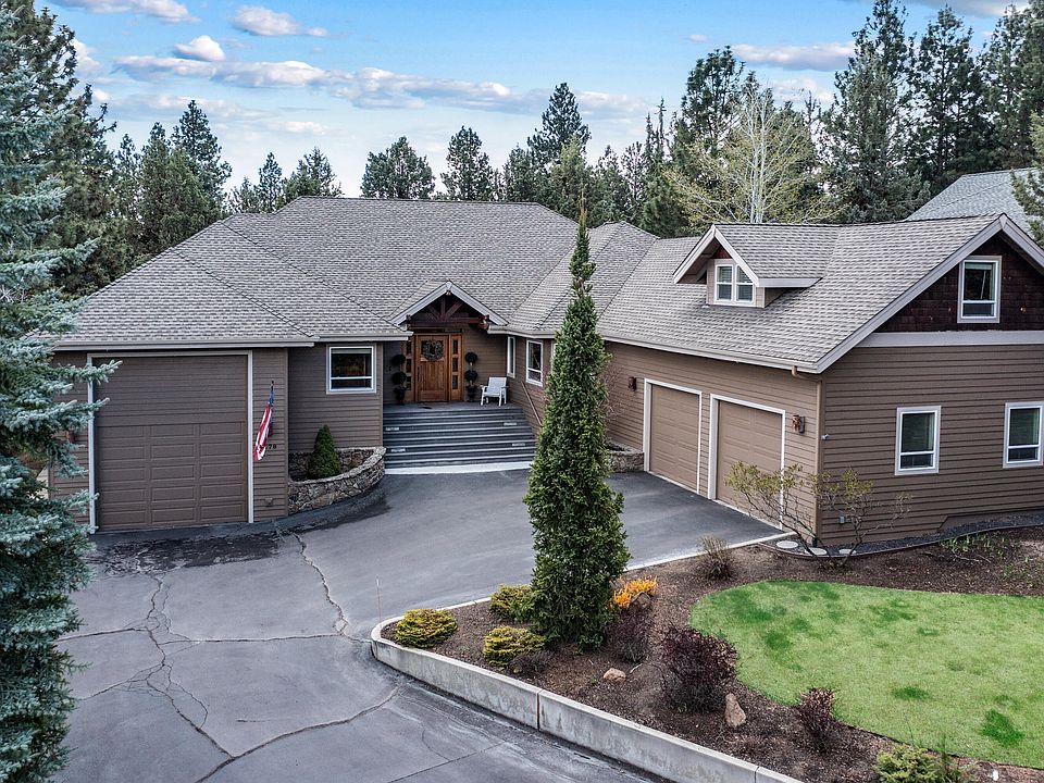 Incredible westside location at the top of River's Edge Village. This mostly single level home, with a huge & hard to find 42' RV garage, is beautifully set on the 5th tee and features a large open great room with fireplace, gourmet kitchen and a perfect indoor-outdoor flow. Living space is all on main level with excellent separation of primary and guest rooms. Owner's suite features two closets + an oversized bathroom and soaking tub. Two BIG guest bedrooms, guest bath and laundry round out main floor. Take a few steps up and find a gigantic bonus room that sits above the 2 car garage. The separate RV garage is amazing! At just over 42' with climate control + hook-ups and new flooring! It also leads to addl. 680 sq.ft. of finished flex space and basement storage. Close to river, trails, shopping, restaurants & golfing. Dual water heaters, recirculation pump, security system, water feature, double ovens, AC and more. Home has assumable VA loan under 3.0%!