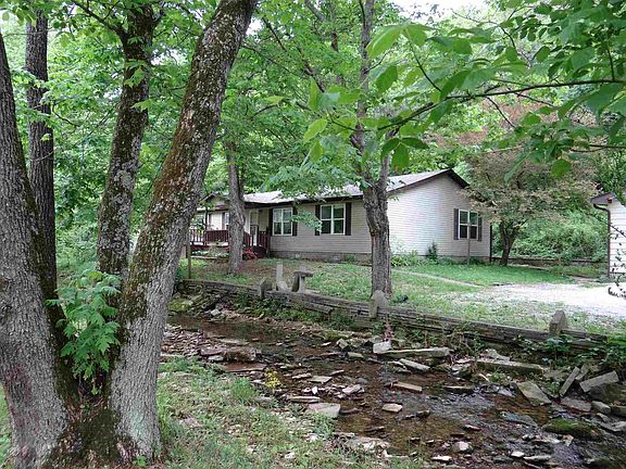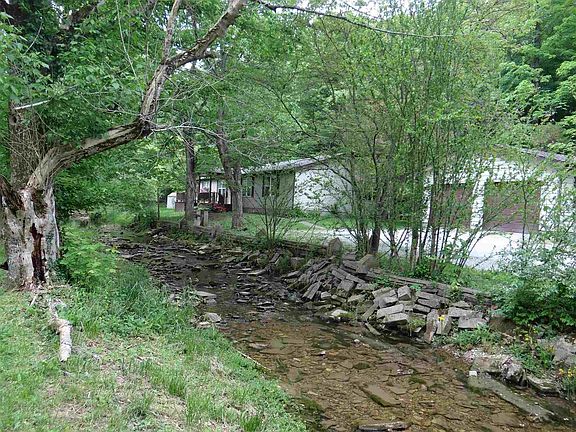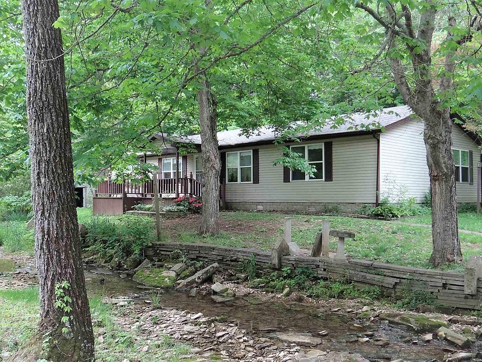 Peaceful setting with a creek. This 3 bedroom / 2 bath home sits on 1.65 acres. Lovely mature landscaping and freshly mulched flower beds are just waiting for your touch. Large living room / family room is perfect for entertaining. Spacious kitchen and dining room combo with vinyl flooring, appliances, and sliding glass doors that lead to a large screened in porch. Large master bedroom and bath with his and hers vanities, built in storage cabinetry, walk-in shower, and large closet. Home has walk-in closets and plenty of storage. Two additional sheds for storage and a detached two car garage.