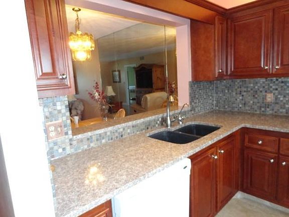 YOU WILL FALL IN LOVE WITH THIS IMMACULATE CORNER CONDO WITH UPDATED KITCHEN WITH GRANITE, ATTRACTIVE BACKSPLASH, LARGE PASS THROUGH TO DINING AREA, AND REVERSE OSMOSIS WATER FILTERING SYSTEM IN THE KITCHEN. WOOD LAMINATE FLOORING THROUGHOUT THE LIVING & BEDROOM AREAS, A LARGE LAUNDRY ROOM WITH FULL SIZE WASHER & DRYER AND STORAGE SPACE & ACCORDION HURRICANE SHUTTERS THROUGHOUT ADD TO THE DESIRABILITY OF THIS WONDERFUL HOME. THE SATELLITE POOL IS AT THIS BUILDING WITH THE CLUBHOUSE AND ANOTHER POOL ALSO AVAILABLE IN THIS COMMUNITY.