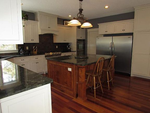 5BR/4BA Craftsmen's Custom Rambler listed way below cost to build. Amazing large kitchen w/granite. Alder, Maple & Cherry woods throughout home. Unique windows, 2 fireplaces, in-floor heat & beautiful millwork. Cement exterior. 11+ acres of mixed woods.