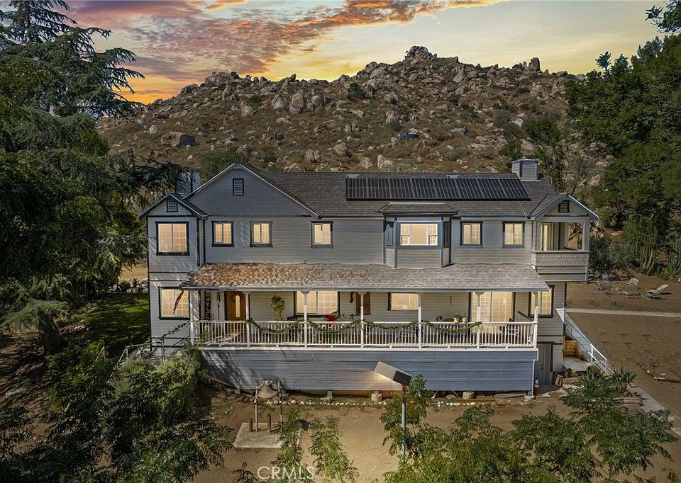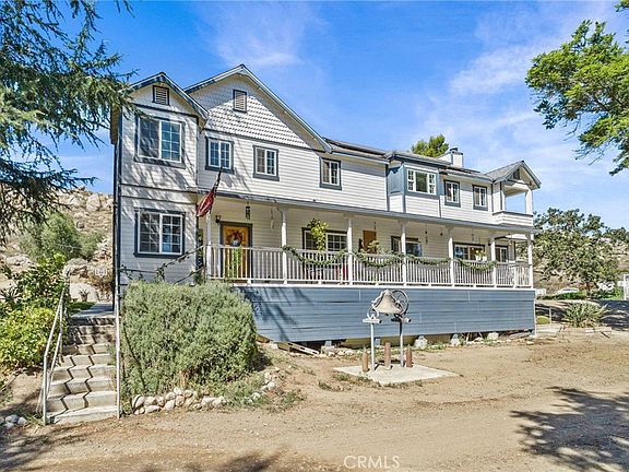 Step into a world of endless opportunities on nearly 5 acres of USEABLE LAND! This stunning Victorian farmhouse is the perfect place for you. This spacious home features 4 bedrooms with 1 bedroom conveniently downstairs and a laundry room located upstairs with a utility sink. The roof is only 2.5 years old, interior and exterior paint is newer. Notice the beautiful crown molding, ship lap and wainscoting designs throughout the house. With a fully paid-off solar system, wave goodbye to high energy bills. For equestrian enthusiast this property features hitching posts, a tack room/feed room, a covered hay area, 2 open flat paddocks and miles of trails out of the property. There is plenty of trailer and RV parking. White PVC fencing is included to enclose one of the paddocks or to use as you like. Also, included is a chicken coop with an outside run and 2 goat pens. THE ENTIRE PERIMETER OF THE PROPERTY IS FENCED. Enjoy the beautiful pond with a featured waterfall attraction providing not only a serene backdrop but also a source of tranquility when enjoying leisurely afternoons by the water. Embrace off-the-grid living while reducing your carbon footprint. Whether you seek a self-sustaining lifestyle, farm life, or a home with enduring character, this is your chance! Come and tour this exceptional farmhouse estate.