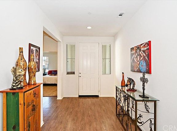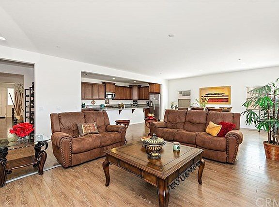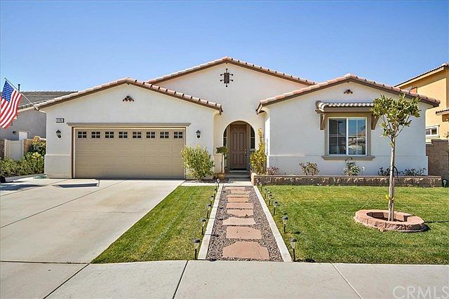Welcome to this Spanish style single story gem nestled on a quiet neighborhood in the fast growing city of Menifee. This spacious 4 bedroom, 3 1/2 bathroom home offers a beautifully designed open floor plan. As you enter the property you are greeted by a wide hallway that allows you access to the entire home. The bedroom right off the entry makes the perfect guestroom, giving your guests all the privacy they need with its own private bathroom. The home also offers luxury vinyl plank flooring, recessed lighting and a bonus entertainment room that can be used as an office, playroom or gym. The open and spacious kitchen features a large island with granite counter-tops, plenty of cabinet space, stainless steel appliances and butler's pantry. The kitchen opens to the dining area and large family room that includes a fireplace, creating an open yet warm space. The spacious master bedroom offers a very generous sized walk in closet and an en-suite complete with dual sinks, separate bath tub and shower, and a separate and private toilet space. The backyard in the home is low maintenance and perfect for entertaining. Featuring a large covered patio with two fixed ceiling fans, a concrete and brick area, and a small low maintenance lawn area, guests are sure to enjoy BBQing and hanging out at your place. This home is truly a must see! With 2800 sqft of well thought out space, you are sure to love this home!