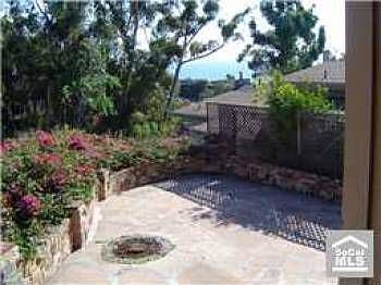 This four bedroom two bath home with an ocean view is all on one level. A two car garage is located under the house,which is a great benefit for Laguna Beach! Home has some hardwood and plywood floors too! Living room with vaulted high wood beam ceilings! Plus a large patio for entertaining with view of canyon and peek a boo ocean view! Bring your paint brush.
