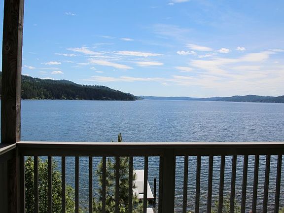 Remarkable 161' of sunny deep water frontage on lake CDA. Large private, .59 acres lot with southwest exposure, newer dock, and newer barely used lake home. This custom efficient home features floor to ceiling glass, hickory cabinet, granite counters, trees decking, and priceless views.