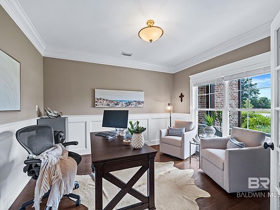 This stunning 5-bedroom, 3 full bath residence is an original 2019 Truland Home built with gold fortified construction, offering peace of mind with enhanced structural integrity and high-quality features. It’s nestled on a serene ¾ acre estate lot surrounded by a protected heavily wooded greenspace, in a tranquil cul-de-sac separated from the heart of the subdivision. Offering privacy, peace and plenty of room to thrive. Primary suite, 2nd bedroom and full bath downstairs. 3 bedrooms and full bath upstairs. The open-concept home is flooded with natural light, providing scenic views of the outdoors. The kitchen would be admired by any chef with highly desired appliances, expansive storage, spacious pantry and grand scale island. Primary Suite consists of dual vanities, dual closets, soaking tub and separate shower. Embrace the nature that surrounds you in the enormous backyard oasis, perfect for endless fun and large gatherings with room to add a pool and generous sized firepit. The patio includes a hot tub pad with 220V outlet. Freshly planted magnolia tree and citrus trees will soon be a beautiful sight, with massive blooms and aroma and producing wonderful citrus for your culinary needs. 12’x20’ storage shed will convey. New rain gutters and upgraded irrigation system. This picturesque residence offers an idyllic retreat in a neighborhood known for its desirability offering a plethora of amenities and seasonal activities. A beautifully landscaped scenic entry to the Stonebridge subdivision provides a perfect place for taking morning or evening strolls or a golf cart tour. Within the Spanish Fort school district, close to shopping, restaurants and the beach, making weekend getaways effortlessly achievable. Don’t miss the opportunity to own this exquisite home that blends luxurious indoor and outdoor living with comfort and sophistication. Your agent can provide a list of recent updates and full features for your review. Buyer to verify all information during due