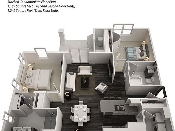 Move-In Ready! This beautiful second floor 2 bedroom, 2 bathroom stacked condominium features kitchen with stainless steel appliances and granite countertops, gorgeous laminate floors throughout main living areas, in-unit washer and dryer, private deck, and one stall detached garage. Units are easily accessible with an elevator in each corridor of the building. The unit also features ramped entrances, 3' doors, and low threshold shower. Along with this great floor plan comes a great lifestyle! Enjoy the community amenities such as basketball courts, playground, and in-ground pool.