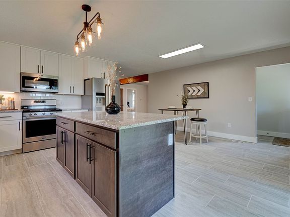 Acreage alert! This fully remodeled, charming rural home has too many new features to list. Located on a hard surface road on 1.36 acres, this can be your little piece of country. All new interior paint, floor coverings, interior/exterior doors. Main floor: Three bedrooms, dining and living area. Kitchen with new white cabinets, granite counter top, ceramic tile floor covering, pantry, island & breakfast bar and stainless steel appliances including washer/dryer. Bath features new marble top vanity.