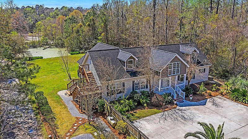 Fantastic home and property in the heart of Johns Island! As you come up the drive you will notice beautiful plantings meticulously placed and nurtured over the years. Entering the home you will find beautiful wainscotting in the entry and large family room as well as newly sealed hardwood floors that run throughout the entire main floor with the exception of tile in the bathrooms and laundry room. You'll love the vibe of and the natural light in the updated kitchen that has tons of counter and storage space and room for an eat-in area. The split floorplan downstairs is ideal with the master bedroom on one side that has his and hers bathrooms and a huge walk-in closet between them. Two other good sized bedrooms are on the other side of the house with another full-sized bathroom. Completing the downstairs is a large laundry room with cabinets and additional storage. Upstairs you will find two more large spaces with new carpet great for use as bedrooms, office space, kids play area(s) or whatever you would like to use them for. Additionally, the upstairs has what can be used as a separate apartment with full bathroom, eat-in kitchen and laundry with a sitting room/bedroom with it's own outdoor balcony and it's own private access from the outside. Great for a mother-in-law suite, long or short-term rental! Air BnB? This home has a large screened-in porch on the back with tile flooring and a gorgeous tongue and groove ceiling. It's perfect for morning coffee or afternoon cocktails overlooking a tranquil pond and an abundance of wildlife and flora. At the back of the property is a tidal creek (about 4' at high tide) perfect for launching your canoe or kayak! Don't miss the 1200 square foot detached garage/workshop that you can use for any hobbies or for parking your boat or RV. About 20 minutes to downtown Charleston and the beach and 5-8 minutes to the many wonderful offerings of Johns Island including restaurants and shopping.