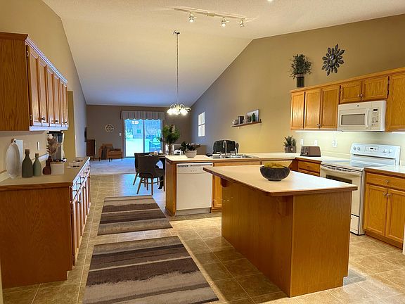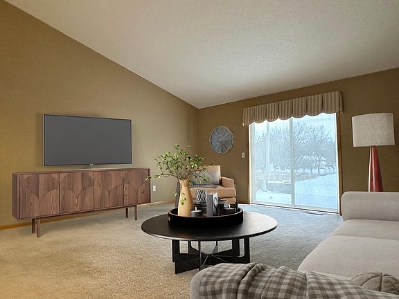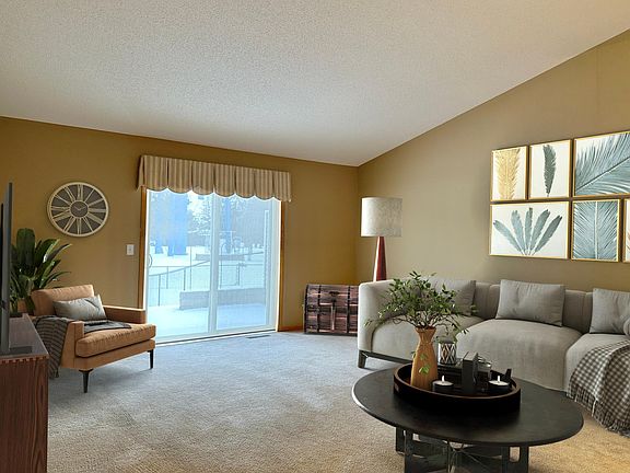 This twin home welcomes you into an area of similar homes, No HOA fees close to ballpark, walking trails and splash park. The Living room & dining area are spacious, and the kitchen has many cabinets with an island and peninsula for extra seating space when entertaining. Pantry has pull out shelves for easy access to the can goods. Two car attached garage and concrete patio outside the living room. You can have a fenced yard for your pet must meet the cities requirements.