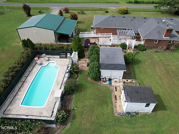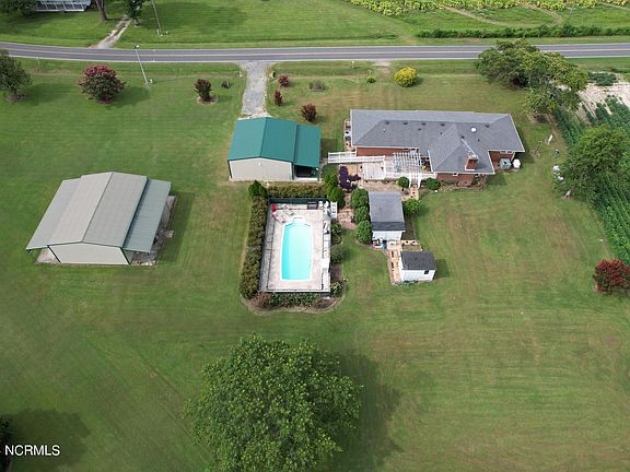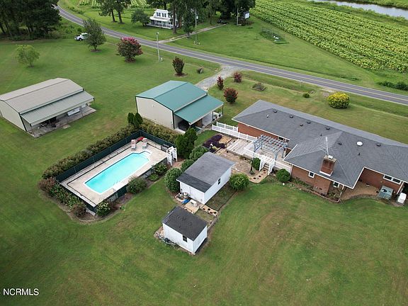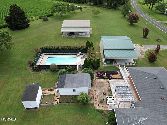 Located less than 6 miles, outside the town of Edenton, for convenience, but in a peaceful, country setting, this property offers all you could ever imagine! The 2396 sq. ft. ranch home is nestled on a sprawling 2.41 acre lot (2 parcels together) offering a perfect blend of comfort and functionality, along with many extra bonuses for country living, fun and relaxation. The home offers 3 Bedrooms, 2 full baths, Living room, formal Dining rm, Den, Kitchen/Dining Rm, office, utility rm and extra storage rm. The huge master suite was added on in 2001, providing a large Master Bedroom w/walk-in closet and large bath w/double vanities, stand-up shower and whirlpool tub. Large deck on back with ramp and vinyl fencing. Check out the 2 detached garages, both equipped with electricity! A 30x30 double garage with attached 12' lean-to with roll up electric doors and a 30x40 garage with 2 10' lean-to additions, along with 2 side entry doors and work bench along the back. Outdoor amenities include a beautifully fenced 14 x 36 in-ground pool, with depths ranging from 3.5 to 5.5 feet, perfect for relaxing or entertaining. Additionally, there's an outdoor building currently utilized as an exercise room, heated and cooled, and a hot tub for unwinding after a long day. For peace of mind, the home is equipped with a whole-home generator. In addition, the home has been encapsulated with a vapor barrier and dehumidifier. Property is not located in a flood zone. Extra added bonuses include 5 large blueberry bushes, a fig bush and a grapevine! Enjoy country living at it's best! Visit the historic town of Edenton, less than 10 minutes away, to explore it's beauty and all it has to offer. Travel to the beautiful Outer Banks for a day trip or time away in only 90 minutes!!