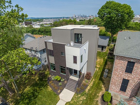 Amazing views of Nashville skyline from your rooftop deck & more great views of Nashville sunsets looking west. Chic and sexy contemporary living meets you every step of the way in this pristine home with open floorplan, 3 outdoor living spaces, 2 car garage and fabulous finishes and style throughout.