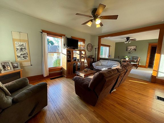 This bungalow style Albia home for sale offers over 1,300 sq. ft. of finished living space and mixes open concept living and modern updates with pleasant charm in city limits. Walking into this beautiful Albia home you'll be struck by the eye-catching hardwood floors and woodwork, cased openings, the many windows offering tons of natural light and a spacious and open concept living and dining area. Between the dining and living is a nice sliding glass door leading to a 10'x20' deck with stairs down to the expansive yard. Highlights of the kitchen include copious amounts of cabinet space with functional and efficient pull-out drawers, stainless steel appliances, a movable island, sitting nook under a large window with additional storage space, and a nice pantry in the hallway between the main living space and kitchen. Other qualities of this appealing Monroe County home for sale include 3 bedrooms (with the main bedroom featuring hardwood floors, large windows, lots of closet space, and extra room to move around and one bedroom non-conforming), a large, full bathroom, and a full, walkout basement containing a laundry area and plenty of storage space. The exterior of the property boasts cute curb appeal, a relaxing front porch, established landscaping, great yard space, and a sizeable 24'x28' detached garage. This attractive home is a true must see! Sellers will not respond to any offers prior to 8:00 PM Wednesday, June 8th.