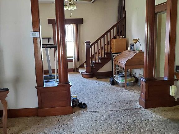 This Affordable Home Is Located In A Great Location! Close To Schools And Fitness Center. This Home Features 1 Bedroom And Full Bathroom On The Main Floor. Upstairs You Will Find 2 Large Bedrooms, 1 Smaller Room Perfect For An Office, And 1/2 Bathroom. Full Unfinished Basement Has Washer And Dryer And Plenty Of Room For Storage. Hardwood Floors Upstairs And Beautiful Woodwork Throughout The Home. Large Closets In Many Of The Rooms. Wood Lap Siding Was Painted Within The Last Two Years And Metal Roof Was Put On Around 5 Years Ago. Nice Sized Backyard With Plenty Of Room For Gardening Or A Place For The Kids To Play! Detached Oversized 2 Car Garage/Shed With Alley Access And Small Garden/Storage Shed. This Home Already Has The Space And Character And Is Waiting For You To Come In And Make It Your Perfect Home! Call Today For A Private Showing!