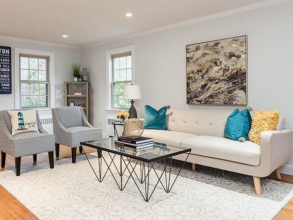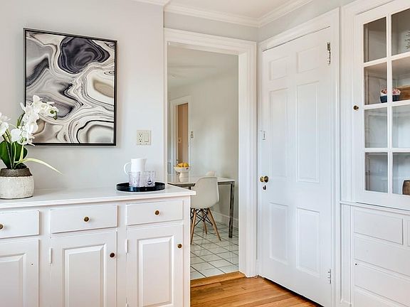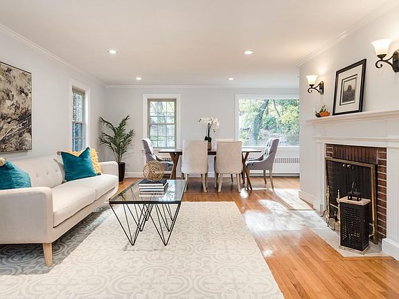 This picture book cape is situated on a over-sized corner lot consisting of a quarter acre of lush level grounds. As you enter this sun-splashed home, you will notice the front to back living dining combo that brings the outside in with its large windows to optimize the view of the yard. The eat-in-kitchen is bright and large with a separate pantry area that also leads out into the yard. This home has a first floor bedroom with an en-suite bathroom with three good sized bedrooms on the second floor. The finished lower level with a walkout allows for flexible spaces including a family room with a fireplace and an additional bonus space. Lovely wood details, hardwood floors and built-ins throughout the home add to the charm. 2 car over-sized garage and ample storage are additional features. Freshly painted inside and out. Minutes to hospital, transportation, Allandale Farm & Putterham Circle.