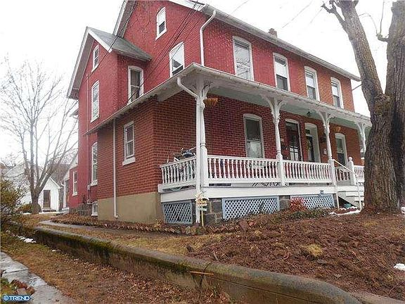 Perkasie Borough Brick Multi Unit with 2 apartments & detached garage. 1st floor unit has hardwood floors, extensive antique wood moldings, pocket door, rear door to large yard and access to alley. 2nd floor apartment has large living room, 2 bedrooms & eat in kitchen. Full basement with private access from both units. Both units offer laundry in basement. 2 car garage is currently vacant but has consistently recieved $225 per month with intense interest when advertised. Room above garage is currently leased by 1st floor tenant. Separate electric meters. Owner currently pays oil, water & sewer. 1st floor unit month to month & 2nd floor unit will be month to month effective 5/1/15.