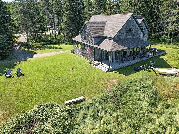 Perfectly situated and designed to take in all the views this lovely property is all you would want in an island property. Shingle style house, separate charming guest cottage at water's edge, a protected dock and deep-water mooring. . Bead-board and wood ceilings are intertwined with soft colored walls throughout providing warmth and interest. Light abounds from perfectly placed windows that capture the views from every angle. A subtle step up to the dining table and kitchen allow for an elevated view across the living room. Cathedral ceiling provides the second floor to be washed with light and get a bird's eye view of the water. Three bedrooms in the main house and a separate guest cottage. Sweet outdoor shower. Large boat and bike shed. Wildflower meadow in front with boats bobbing on their moorings and the ocean and mountains beyond. .Your bit of Maine on Swans Island.