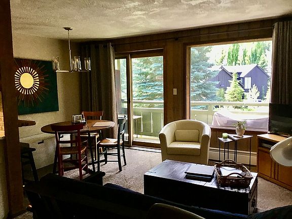 Limelight Condo. Super clean, single-level, one bedroom w/king bed, double closets. Stainless steel appliances, marble countertops. Full size tiled bathroom. The mountain views are terrific from the deck & from the large window and new patio door. Located nearby the neighborhood dog park, Warm Springs Creek, bus line and ski lifts! Spacious garage with private storage closet.