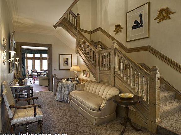 Waterside masterpiece overlooking the idyllic lagoon offers an unparalleled panorama of The Charles River. Exquisite original details include beautifully carved staircase, ornate fireplaces and moldings, grand scale towering bay windows, rich paneling and soaring ceilings. The elevator goes to all floors, four car garage parking, roof deck and terrace.