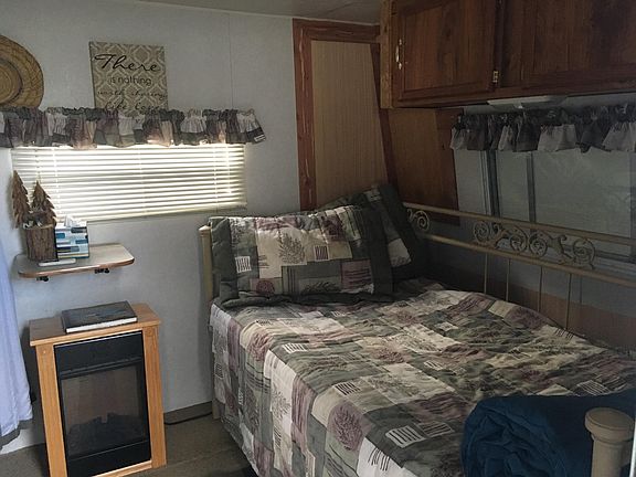 Great little get away in Parowan Foothills RV Park. 2003 Skyline Nomad trailer with a covered deck and a room attached, could be a small bedroom. There is a carport and a shed ! Buyer to verify Sq. Footage