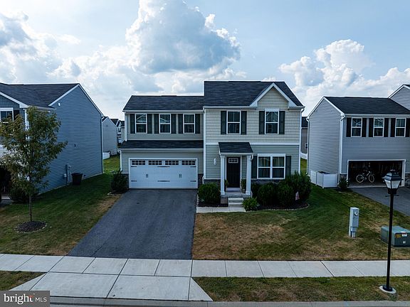 This 5-year-young house is move-in ready! Featuring over 1400 square feet of finished living space, 3 bedrooms, 2 full baths, and one 1/2 bath! Walk inside to find pride of ownership stands out! The open-concept first floor features a living room/kitchen combination with plenty of space! The custom shiplap wall will catch your eye right away and let you know this house was meticulously maintained. The kitchen features stainless steel appliances, a built-in microwave, a large farm sink, a pantry, and an eat-in area. There is a half bath on the main level, making for ease of living! Head upstairs to the sizable primary bedroom with a walk-in closet and en-suite bathroom. The bath features LVP flooring and dual vanities. The 2nd bedroom has a gorgeous accent wall that you will love! Both the second and third bedrooms are served by a full bath in the hallway. The upstairs laundry with LVP planking makes the walk to the basement with dirty laundry a thing of the past! The basement has a rough-in for a bathroom, so it is ready for your finishing touches. The flat backyard is the perfect place to play ball with the kids. A 2-car garage rounds out this nearly new home! The community amenities include a clubhouse, in-ground pool, playground, walking trails, & a dog park. This is a must see!
