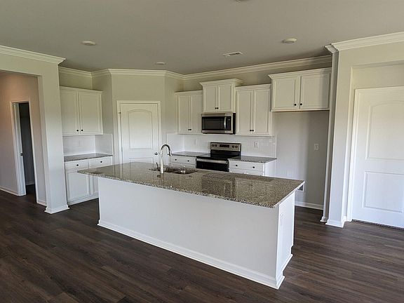 Under Construction-The Robinson plan ready in early September. This open floor plan creates a feeling of spaciousness without sacrificing coziness. The large kitchen is open to the family room and is equipped with an extra-large island, granite counter tops, pantry and tile backsplash. Large main suite offers double vanity with quartz tops, separate 5 foot garden tub, 5 foot shower with glass door and oversized walk-in closet. LVP flooring throughout the main living areas, bathrooms and laundry room with carpet in the bedrooms. Enjoy the corner covered back patio all on a .22 acre lot.