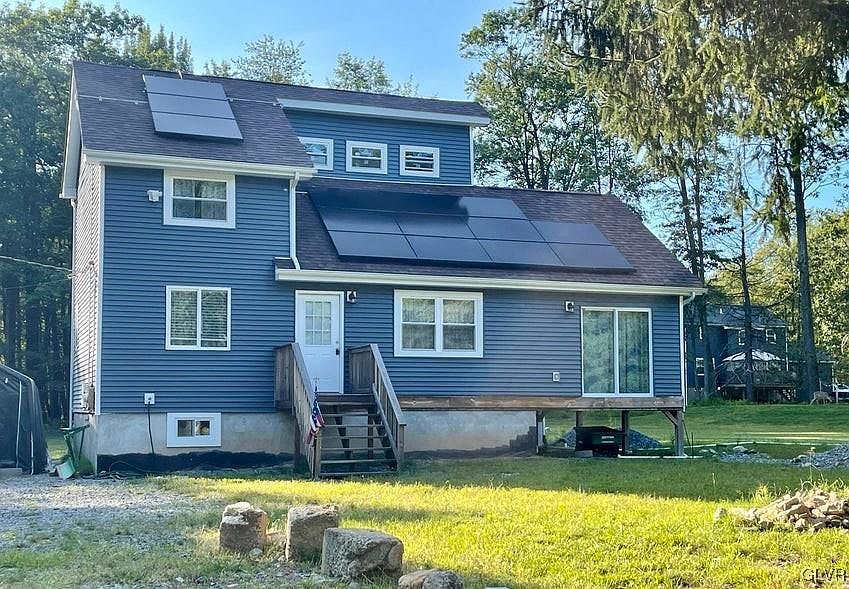 Like New Contemporary in the heart of the Poconos! 4 BR's, 2 Baths situated on a level 1.21 acres. Updated eat in kitchen w/ Stainless Steel Appliances and Granite counter tops. Formal Dining Room can be used as a multi-purpose room. Luxury Vinyl flooring in main areas. Bathrooms have all been updated. Shows really well! Full basement with outside access allows for lots of storage! Heat source is electric and solar. Home needs some outdoor finishing but the major items have been completed. New septic was recently installed. STR's are allowed with the proper permitting. Please do your due diligence to verify this information. Home is being sold mostly furnished. A great house for the price! Just minutes to Rt. 380, Restaurants and Shopping. Put this on your list to see!