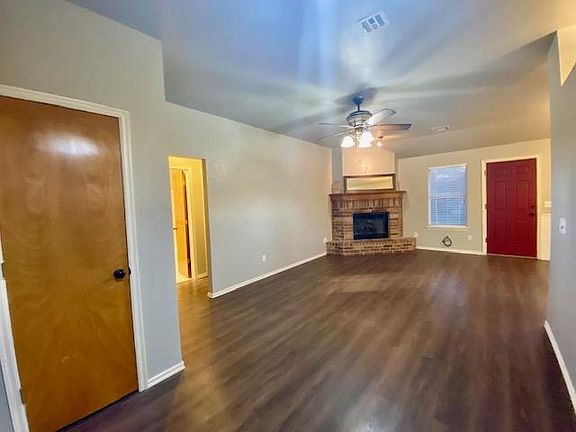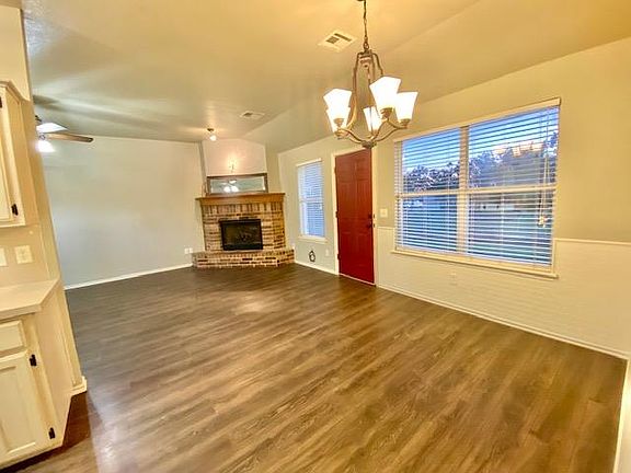 Beautiful 3 Bed + 2 Bath home, conveniently located in a great neighborhood. Living room w/ gas fireplace opens into the dining and kitchen, perfect for entertaining. Master bedroom has standing shower, separate jetted tub and a large walk in closet. Split floor plan w/ 2 additional bedrooms ensures privacy. Kitchen has gas stove, ample cabinets and pantry. Laundry room, 8 person storm shelter, updated light fixtures, ceiling fans, new a/c unit in 2019, large shed in the back yard are additional features. Within walking distance to elementary school. Small dogs and cats allowed with non refundable $400 pet fee. Renter responsible for water, gas & electric. No subleasing.