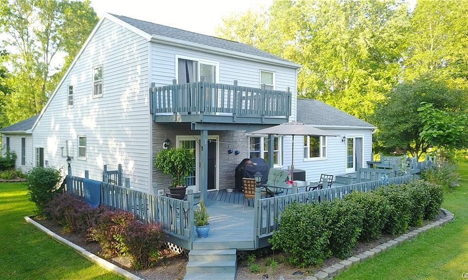 Amazing waterfront home! 300 ft of waterfront on 2.24 acres.Great location. Open foyer into greatroom w/cathedral ceilings, natural light, lovely sliding doors to your beautiful & extremely large multi level deck. Formal dining area & beautiful kitchen w/granite counter tops, plenty of cupboard space & an island to die for! 1st floor laundry and full bath,very large family room w/ bar area, & another set of sliders to your large yard, & beautiful waterfront. Upstairs boasts 3 bedrooms and 2nd full bath. Master bedroom w/sliders to deck, overlooking picturesque yard with screened in gazebo and very large dock, w/electricity and water. Hardwood floors, 2 stall garage, and so much more! TAXES SHOWN WITHOUT BASIC STAR EXEMPTION OF $567.00.