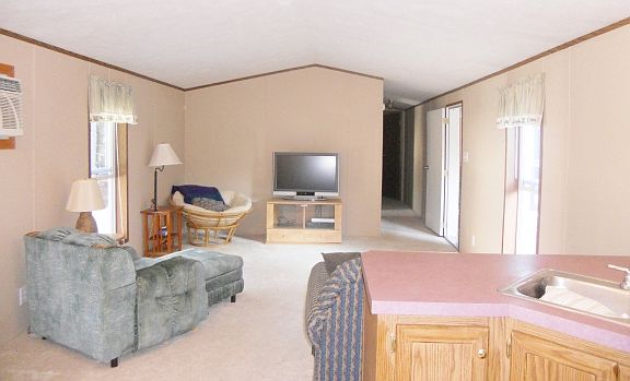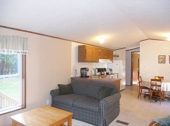 What an opportunity!!! Terrific 3 Bedroom / 2 Bath Mobile Home on Its Own Land!!!! Well cared for, huge 3-season (insulated) porch plus a 2 Car Garage (Note Square footage does not include the huge porch)Master Bedroom has private 4 piece bath, 2nd bath is updated, open concept kitchen, dining & living rooms, beautiful garden beds, wonderful 5 acre setting - set nicely back from road, woods all around