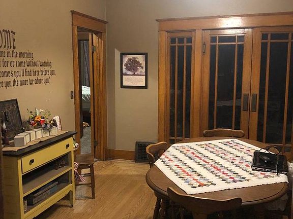 Home is a charming bungalow with lots of oak woodwork and and oak flooring. Living room has fireplace, There is a formal dining room. French door separations. Dining room has walk out to small patio. Home has ample closet spaces and main floor laundry. There is a full basement that could be finished our is very usable as a hobby or work space. Corner lot location. Wonderful family home, but also excellent starter or retirement property. Come take a look.