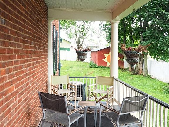Beautiful older home on quiet street with all the upgrades. New kitchen, original hardwood floors, 5 large bedrooms, full bath on 2nd floor, full bath on 3rd floor. All brick, front & side porch, back porch, entire yard fenced, metal roof, wood burning FP. Most of the furniture conveys. In town living, walking distance to downtown. Great commuter location. Shows beautifully, this is a must see!