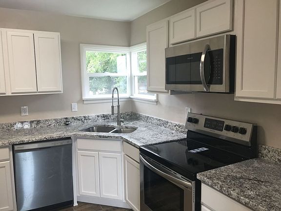 Complete home makeover. You will not recognize this house with everything they have done. New kitchen, bathroom, paint, flooring the works! The front door opens up into the family room. The family room splits off into the kitchen and bedrooms. Both bedrooms have built