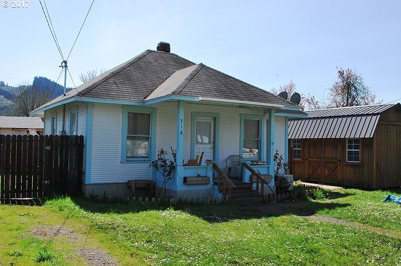 Cute 2 bedroom starter with large deck out back, partially fenced, new water heater, new heat pump,new electric panel, includes 10X16 Hickory Shed. Across the street from Sutherlin City Park