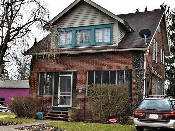 Brick cape featuring some many unique features! Screened in front porch perfect for relaxing in the spring & summer months. Two tier patio with access to rear yard and balcony above offers amazing views of the neighborhood. Low traffic street on the upper north hill of the city. Detached garage, off street parking and newer heating system.