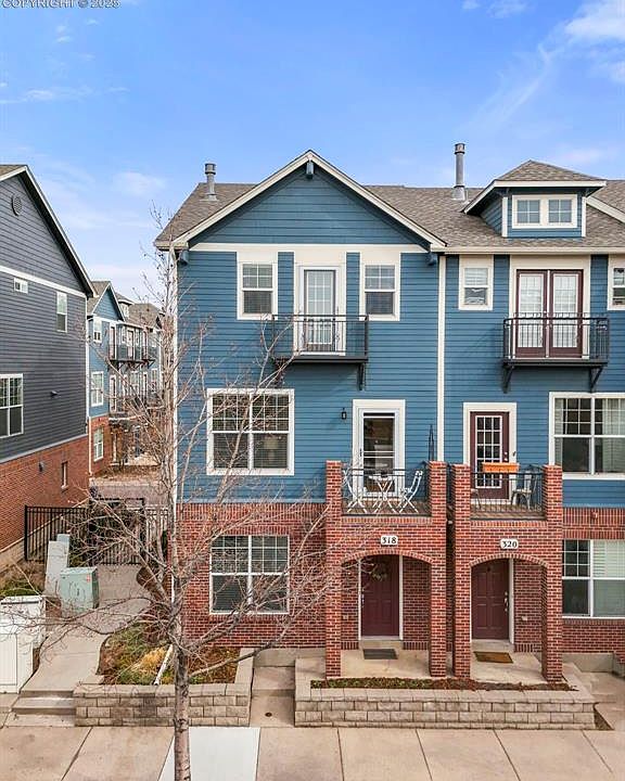 Located in the vibrant south end of downtown Colorado Springs, this charming brick townhome seamlessly blends urban living with breathtaking mountain views. Just steps away from an array of attractions, including restaurants, museums, boutique shops, cozy cafes, parks, and trails, this location offers unmatched convenience and lifestyle amenities. Upon entering at the ground level, you’ll find a versatile space (ideal for a home office, library, gym, play area, etc) accompanied by a half bathroom, a storage closet/mudroom, and direct access to a two-car garage—a rare downtown feature! The main level exudes charm and elegance with hardwood floors and an abundance of natural light, while a cozy gas fireplace is nestled between the living room and dining area. The well-appointed kitchen features granite countertops, stainless steel appliances, a central island, and 42-inch cabinets, complemented by a charming seating area that opens onto a balcony with captivating views of Pikes Peak—an ideal setting for tranquil meals or vibrant gatherings. On the upper level, the serene primary suite offers a private balcony, a walk-in closet, and a spa-like 5-piece en-suite bathroom complete with a soaking tub, a standalone shower, and dual sinks. Two additional bedrooms share a balcony and are conveniently situated near the full bathroom and laundry facilities on this floor. Outdoorsy? You will love the home’s proximity to Shooks Run Trail—only two blocks away—which grants easy access to the Legacy Loop and an extensive network of trails perfect for walking, cycling, and hiking. The end unit offers privacy with only one shared wall, four balconies with stunning mountain or green space views, and ample storage throughout the home. Also included: a refrigerator, washer, and dryer. The complex is also well maintained, with ample guest parking, a newer roof, and fresh exterior paint. Don’t miss the opportunity to own this stunning townhome in the heart of downtown Colorado Springs.