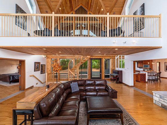 This captivating mountain retreat, prominently showcased on HGTV's Country House Hunters, presents an exquisite blend of comfort and luxury. Boasting 4 bedrooms (including 2 primary suites), 4.5 bathrooms, 2 great rooms, a den, a wine cellar and a charming loft, this sprawling residence spans over 5,200 square feet of designed living space.