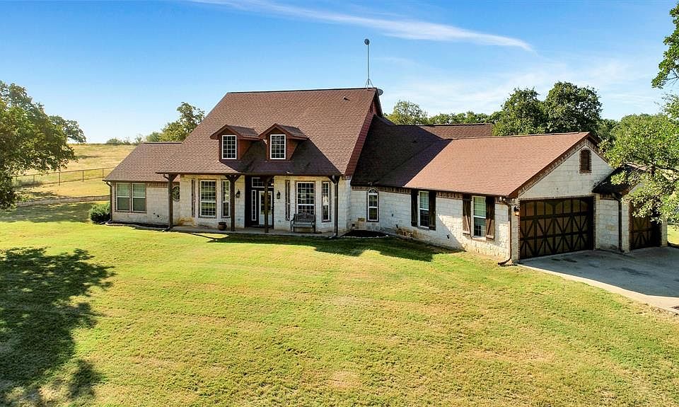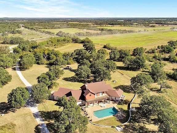 * A show-stopping custom entrance greets you to your sprawling 22 acres, fully piped-fence & loaded with mature oak trees! * Minutes from downtown Weatherford, but the benefits of Jack County Taxes! Whew! Can't beat that combo! You'll know you have arrived before the key ever unlocks the door! This incredible 5 bedroom home is adorned with a large game room, wet bar, media room, walkout balcony, saltwater pool, sports court & storm shelter, mature trees, & views for days! The 50x30 shop is equipped with water & electric and has a 20x50 overhang over slab + 20x30 overhang over gravel! These are just a FEW of the endless list of amenities you will find at your new home! * Country elegance is an understatement! *