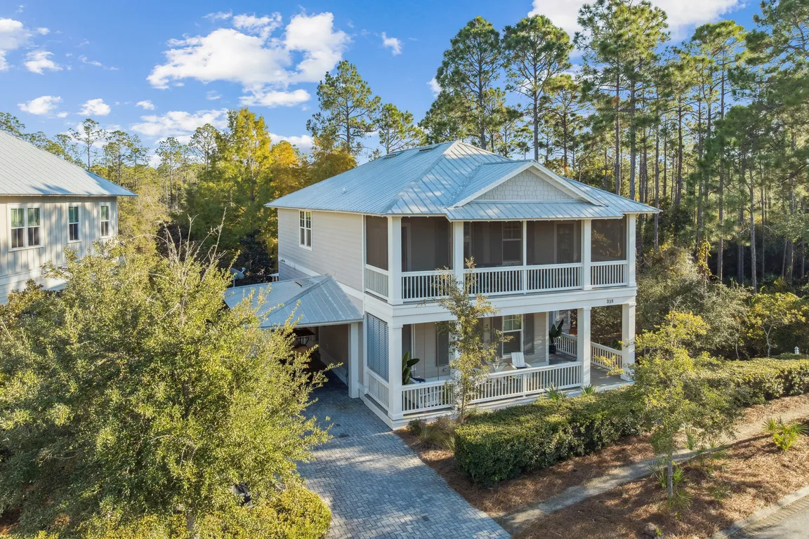 This Watercolor home is in the Cedar Woods area, A very well appointed home featuring 4 bedrooms, 4.5 bathrooms, a bunk room, and a carport with three additional parking spaces. Unique position surrounded by a Preserve and a Pond! Generous Room in driveway for cars and golf cart to maneuver.Aptly named ...