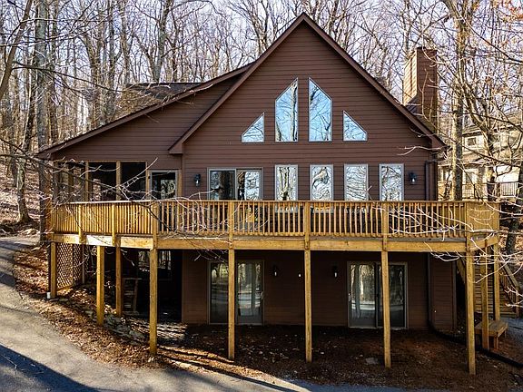 A very attractive house in the middle of Devils Knob Golf Course. Two living areas. A full kitchen on lower level with access to parking. Main level has a full second kitchen, master bedroom & guest bedroom, porch & deck. Top level has additional bedrooms & loft area. Home has been a strong rental within the Wintergreen Rental Program. Rental income figures are available through your agent or listing agent.