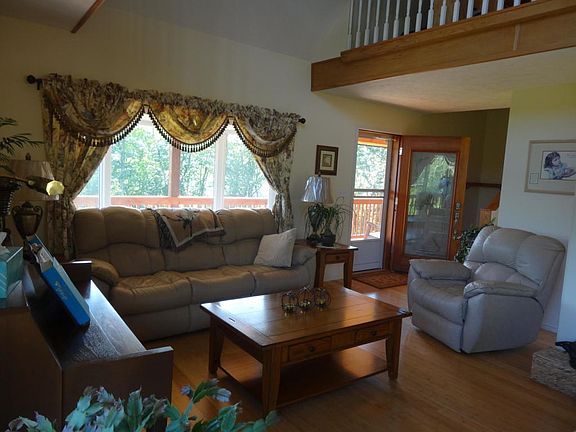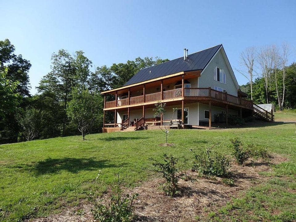 Overlooking Brooks Falls and the beautiful New River Gorge National Park and Preserve. Newer construction offers privacy and seclusion - 4BR, 5BA, family room, guest room, 2 story home with open floor plan, vaulted ceiling, loft and upper mezzanine living/office area. Newer two stage, efficient heat pump (2014 Rheems) for central heat and air, smart thermostat (Sensi), new smart security system, bamboo laminate and ceramic tile floors and two wood stoves, one in the walk out basement and one on the main floor. Two master bedrooms, both with private baths and walk-in closets, the upper master with dual sinks and black granite vanity, the lower with message and steam shower. The kitchen features a walk-in pantry, black granite counter tops and red cherry cabinets with quality self-closing drawers. There are two laundries. The main floor laundry has an abundance of quality red cherry storage cabinets. The house is constructed of hemlock beams finished with red oak and 2x6 full size hemlock exterior walls with extra insulation. A wrap around deck skirts the house on three sides, 2 sides with covered 50' porches, the front overlooking the Gorge. A 7 gpm well with excellent water with a softening system supplies the house and greenhouse. Apple, plumb, peach, pear, cherry and other fruit trees ornament the front lawn, grapevines and berries boarder these surrounded by hardwood forest with abundant deer and other wild life. The 1400 sq ft. bright walk-out basement has two eight foot patio doors opening onto a 50 ft covered deck. It is partitioned and has two bathrooms (for a total of five bathrooms), has an insulated and ventilated cold storage room, second laundry and second kitchen. The basement is 50% finished with a family room and cozy wood stove. The greenhouse and gardens are plumbed and both greenhouse and utility shed are wired. The shed also has a generator hook up to feed the house with two phase power, isolating the house from the noise and exhaust. Finished area of 3,000 sq ft is 2,400 on the upper floors and 600 in the basement. The rest of the basement is partly finished, 800 sq feet and the loft is another 200 sq ft finished for a total area of 4,000 sq ft plus 1,400 square feet of deck, 1,200 of it covered. Showings can be any day except Saturdays. To realtors, if you find a buyer(s) who is pre-approved or has cash I'll sign a one buyer contract at 3%.