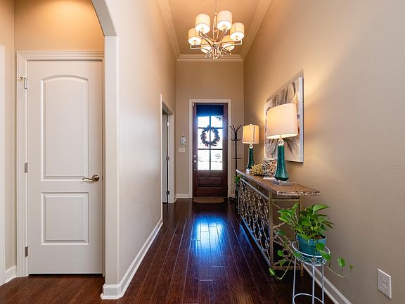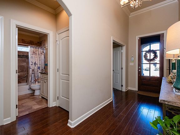 Custom built Bill Parkinson home with lots of extras. Hardwood floors throughout including all bedrooms. Open kitchen, living and dining. The kitchen has custom cabinets, granite countertops and stainless steel Viking appliances. Living room has a wood burning fireplace. 9 foot ceilings throughout. Master bedroom is large and has wonderful master bath with a walk in closet. Two covered patios with one screened in. Large laundry room with desk. New water heater. Extra landscaping, side yard garden and raised beds. Great molding, plantation shutters, speakers installed on the patio and garage and security system with 9 channels and cameras.