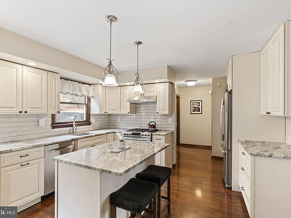 A stunning colonial home nestled in the picturesque Whitford Village of West Whiteland Township. Set on over half an acre of beautifully landscaped grounds, this home offers the perfect blend of classic charm and modern convenience. A long, covered front porch invites you to relax with your morning coffee or unwind in the evening while taking in the peaceful surroundings. Step inside to a bright and welcoming tile foyer, transitioning seamlessly into rich hardwood flooring that extends throughout the main level. A neutral color palette and abundant natural light create an inviting atmosphere in every room. Flanking the entryway are a spacious living room with a large bay window and a formal dining room, perfect for hosting gatherings. The dining room flows effortlessly into the newly renovated kitchen, where off-white cabinetry is beautifully complemented by a stylish tile backsplash, granite countertops, and stainless steel appliances. A large island with pendant lighting and seating for two provides the ideal space for casual meals, while the attached breakfast nook is perfect for everyday dining. The sunken family room is a cozy retreat, featuring a brick fireplace to enjoy during the colder months. French-style doors open to a private backyard oasis, complete with an expansive maintenance-free deck, a pergola with planter box footers, and sleek railings. A covered section with string lighting sets the perfect ambiance for outdoor entertaining. Upstairs, the primary suite is a true sanctuary, featuring a vaulted ceiling and a spa-like ensuite with a glass-framed tile shower, double quartz vanity, marble floors and modern finishes. Three additional generously sized bedrooms, each with ample closet space, share a beautifully updated hall bathroom. Bonus oversized garage with an extra bay deep for all your tools, mower or sport equipment! Tucked away on a quiet cul-de-sac, this home offers both tranquility and convenience, with easy access to shopping, dining, and major roadways. Don’t miss the opportunity to own this exceptional property in a sought-after community!