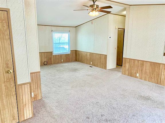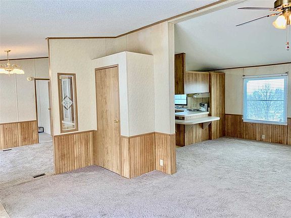 Nice sized home with tons of potential and vaulted ceilings throughout. Home features a nice sized kitchen with lots of cabinet and counter space and a table height breakfast bar as well as a pantry and formal dining room with built in hutch. Laundry is located on the main floor just off the kitchen. Guest bath has a tub/shower combo and great storage in the vanity. 2nd and 3rd bedrooms are spacious with walk in closets. Large Master bedroom has its own bath and walk in closet. Master bath has double sinks, a step in shower, and nice tub. Off the laundry room is a good sized addition with family room and office/sewing room as wells as basement access. Family room has its own private entrance. Outside the family room is a large concrete patio with a nice south facing view.