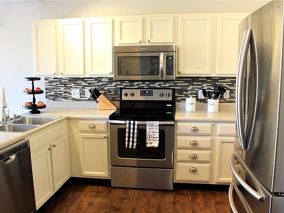 You will be in love the moment you pull up! GREAT CURB APPEAL!!! Darling ranch home offers SPLIT BEDROOM FLOOR PLAN w/ 3 bdrms, 2 full baths & 2 car rear-entry garage * VAULTED great room (could be greatrm & dining rm combo) features laminate floors & ceiling fan * VAULTED kitchen boasts laminate floors, cabinets painted cream w/ nickel hardware, STAINLESS APPLIANCES include smooth-top range, microwave & dishwasher, TILE BACKSPLASH and opens to large breakfast room also w/ laminate floors & slider to patio & BACKS TO COMMON/OPEN GROUND...offering long-lasting privacy * Laundry room is spacious and has been updated w/ cabinetry for additional storage.* Master bedroom w/ ceiling fan, walk-in closet & private bath w/ long vanity & kneespace, tub/shower combo & plank tile floor * 2 addl bdrms & full bath * WHITE 6-PANEL doors. So cute and cozy that you wont want to leave!